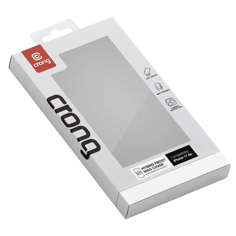 The Hybrid Frost MAG Cover features 37 high-power N52 magnets for faster wireless charging and seamless attachment and detachment of accessories to your iPhone. The CRONG case works with all chargers, car holders, as well as power banks and wallets with MagSafe. The back of the case is made of durable polycarbonate and then protected with a special anti-fingerprint coating. Thanks to this, you can’t see smudges or fingerprints on your phone. The reinforced corner design also protects the iPhone case in the event of drops on hard ground. The Hybrid Frost MAG Cover also features precise aluminum buttons for convenient use of all the phone’s features. The raised edge of the display allows you to safely put the iPhone face down, and the raised bezel around the camera protects the rear camera. Product Features: High Power N52 Magnets (37 Pieces) Magnetic ring with positioning magnet Snug fit on all your MagSafe accessories Reinforced corner design Smudge-resistant anti-fingerprint matte coating Raised camera bezel and display edge Function buttons made of aluminium Compatibility: iPhone Air