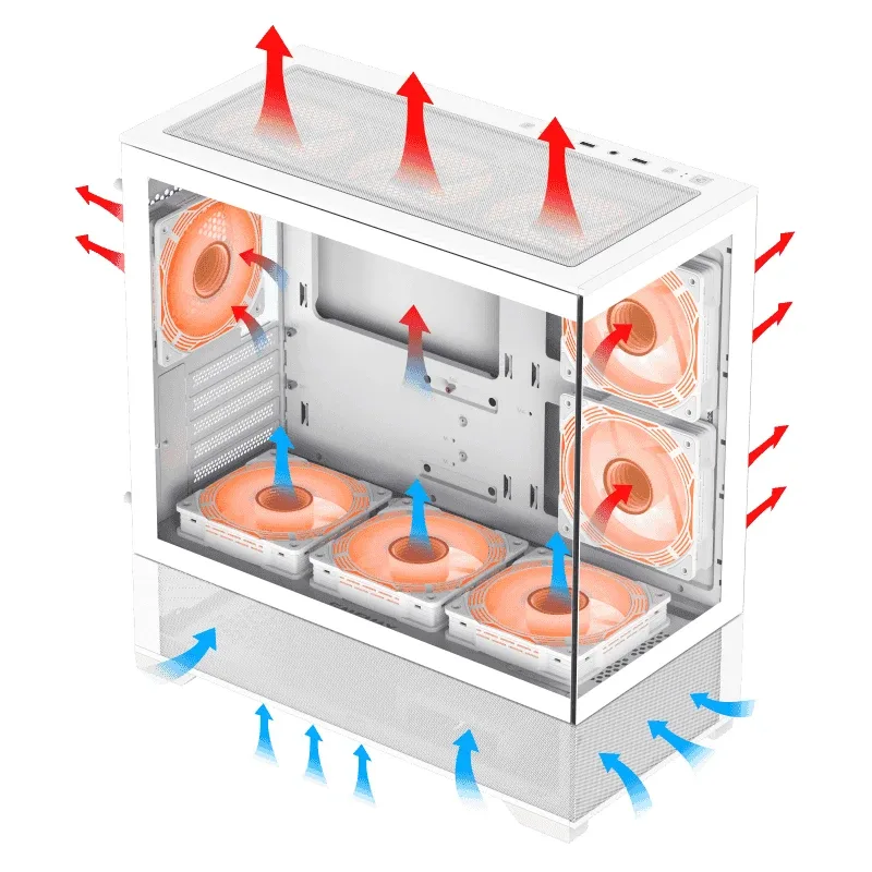 M/B Cover: 2 x 120 mmБРОЙ 3.5″ ГНЕЗДА : 2БРОЙ 2.5″ SSD ГНЕЗДА : 2РАЗШИРИТЕЛНИ СЛОТОВЕ : 5МАКС. РАЗМЕР ОХЛАДИТЕЛ : 165 mmМАКС. РАЗМЕР ВИДЕОКАРТА : 410 mmЦВЯТ : БялДОПЪЛНИТЕЛНИ : Good build quality computer case made of heavy-duty steel metal frame and 4.0mm tempered glass