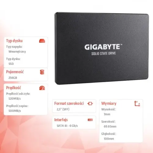 Gigabyte SSD 256GB 2,5 SATA3 520/500MB/s 7mm