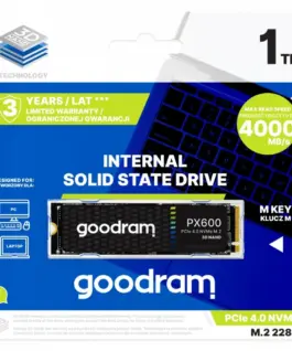 The latest Goodram PX600 SSD is the solution for demanding users looking for reliable memory with fast data transfer rates. Thanks to the PCIe 4 x4 standard, the drive operates at speeds of up to 5000 MB/s. The performance of the PX600 is sure to be appreciated by gamers, computer graphic designers, those running photo and video editing software, as well as anyone working with large data sets.