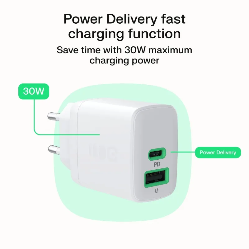 Green Cell USB wall cha RGER 30W 1xC 1xA бял