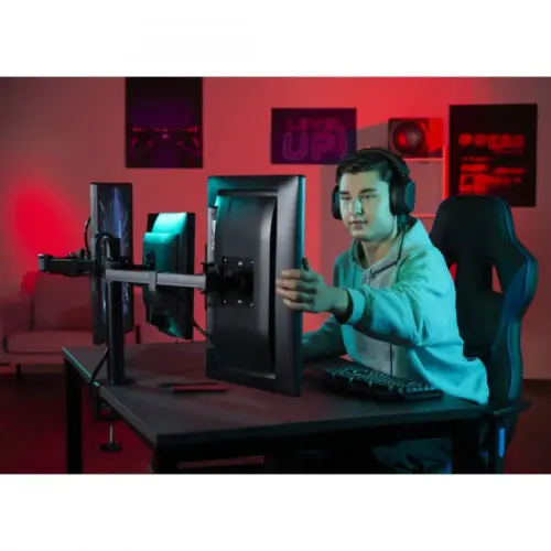 - For the installation of two TFT/LCD/LED monitors with a screen size of 33 to 69 cm (13″ to 27″)