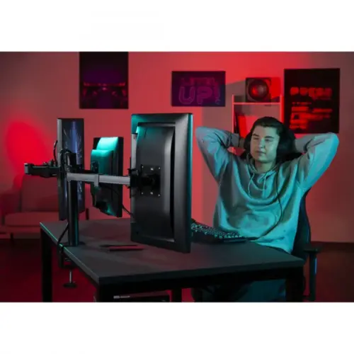 - More ergonomics, comfort and desk space with 3 monitors: thanks to the fully mobile monitor base, the работна станция position adapts to the user and not vice versa – ensuring ergonomic posture and reducing neck and back pain.