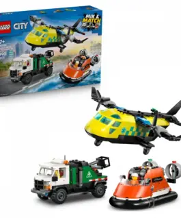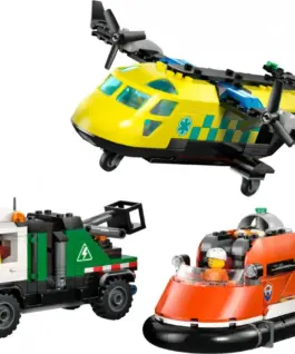 The LEGO City Airplane, Service Truck, and Hovercraft Set (60505) for children aged seven and up sparks creative play. This three-vehicle rescue set includes a medical airplane, a coast guard hovercraft, and a service truck with a crane. Each model is made up of three modular parts that can be combined, allowing boys and girls to mix and match vehicles to tackle any mission. Simply add the minifigures of a pilot, coast guard rescuer, and medic, and the adventure begins!