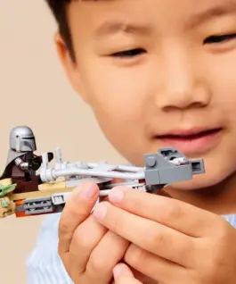 Recreate scenes from the first season of Star Wars: The Mandalorian set on Tatooine. This LEGO brick version of The Mandalorian and Grogu’s Landspeeder (75436) makes a great gift for boys and girls aged six and up. Place the Mandalorian LEGO minifigure in the driver’s seat and the Grogu LEGO figure next to him in the attached saddlebag. Attach the Mandalorian’s blaster to the back of the vehicle for ready-to-play action.