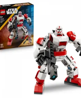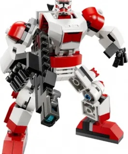 Place the Clone Shock Trooper minifigure in the cockpit and attach its blaster rifle to the back of the mech. The arms and legs can be positioned for a variety of battle poses. Place the large blaster rifle in the mech’s hands and activate its stud shooter. Featuring the iconic red and white armor of the Shock Trooper Clone Mech, the mech also looks cool as a display between missions.