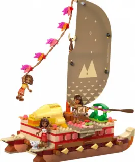 - Model kit Includes a buildable double-hulled canoe toy with a textile sail, removable deck and under-deck living area, plus 4 LEGO Disney movie characters and lots of details