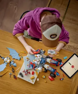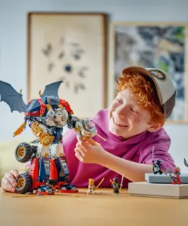 Kids can play with the stunning large combiner mech, which has posable legs, feet, arms, wrists, fingers and head, dragon wings, plus a cockpit and 2 shooters. They can then separate it into 4 smaller models: a dragon toy with posable features and wings, a jet toy with movable engines and a rotatable cockpit, a car toy with 4 large off-road wheels and 2 opening cockpits, including one with hidden blasters, and a Zane action figure.