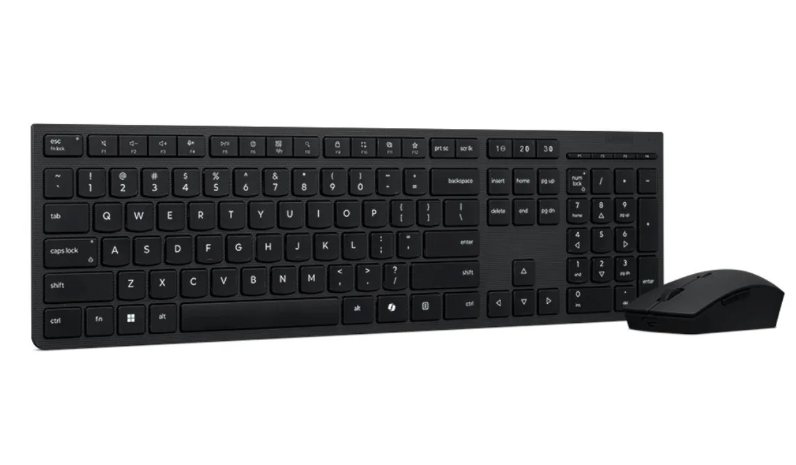 The Lenovo Professional Wireless Rechargeable Combo Keyboard and Mouse is a revolution in productivity and design. Its full-size keyboard features scissor switches that create an elevated typing experience and improves your working efficiency with specialized Microsoft Copilot Key. Its mouse, marvelously crafted from bio-rubber, keeps you comfortable all day and is equipped with an impressive 4,000 DPI sensor. Plus, both the keyboard and mouse are made from eco-friendly 65% recycled material that protects the environment.