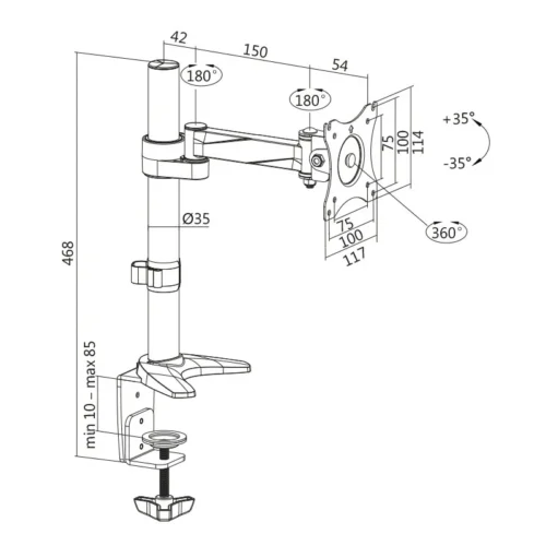 Befestigen Sie Ihren TV- und Компютър-Monitor direkt am Schreibtisch. So können Sie auch dort Ihre Bildschirme mit voller Bewegungsfreiheit nutzen und sie nach Belieben neigen, schwenken oder drehen.