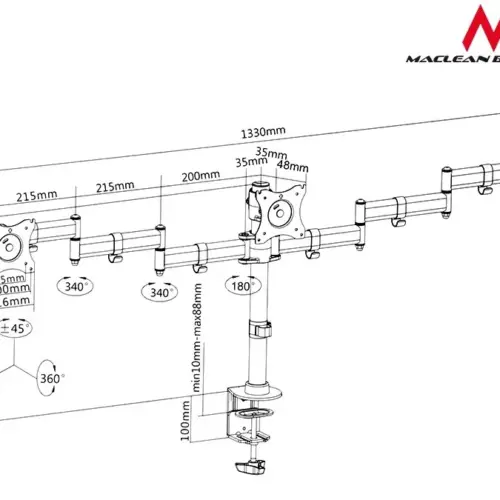 LCD Monitor Maclean MC-691 provides great comfort at work optimizes ergonomics and monitor view through the possibility of installing three monitors on one handle.