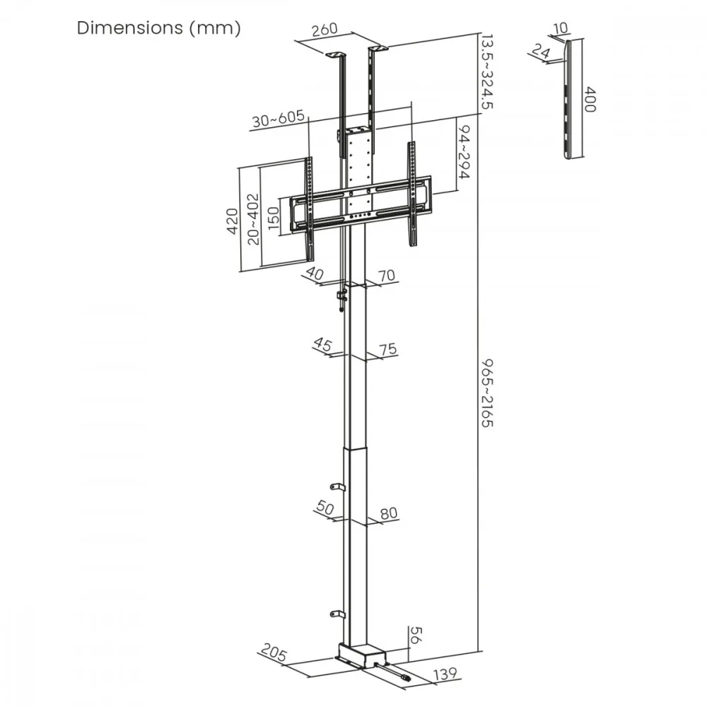 he Maclean MC-125 electric ceiling/floor mount is a modern solution that combines functionality, convenience and aesthetics. Thanks to the use of an advanced electrical system, the TV can be automatically extended from the floor cabinet, as well as lowered from the overhead cabinet, which allows for a perfect fit to the user’s needs. This practical solution will work well both at home – in the bedroom, living room or media room – as well as in offices, hotels or commercial spaces where ergonomics and aesthetics matter. The use of this Тип of mount allows you to maximize the use of space and aesthetically hide the TV when not in use. Mounting in the cabinet makes the screen slide out only when it is needed. This is not only a practical solution, but also an elegant one that fits perfectly into modern interior designs. Thanks to this, the TV does not dominate the space, while it is always ready to use.