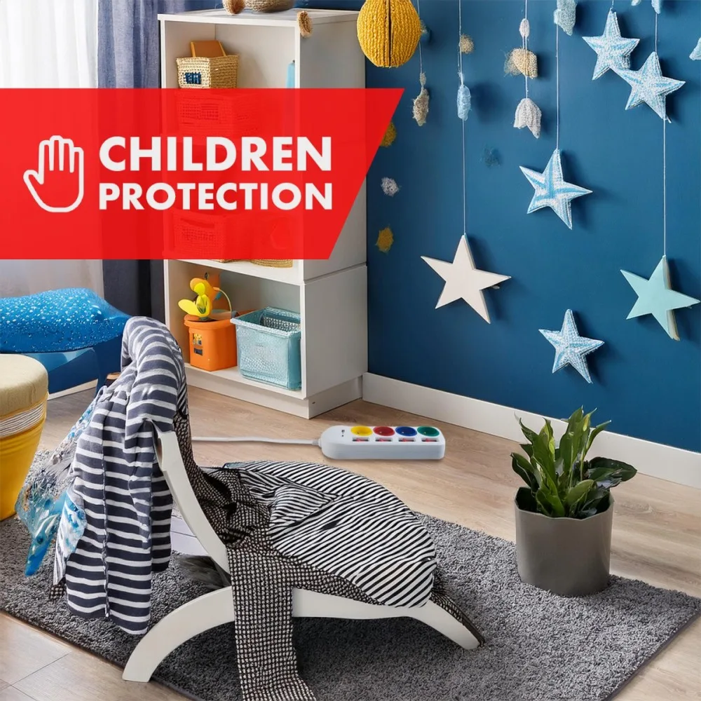 The Maclean MCE508 power strip is a practical device that allows you to connect four full-size plugs and charge your devices via two USB ports (A and C). Each outlet has a separate illuminated switch, allowing you to manage the захранващ блок individually. Thus, you can turn off the power for a specific device without disconnecting it from the strip, which is extremely convenient and saves energy. The strip is equipped with child protection, ensuring safe use in areas where the youngest are present.