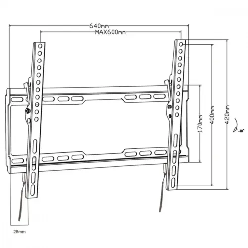 The universal wall mount is used to mount LCD, LED, OLED TVs of various brands with a weight of up to 45 kg and screen diagonal from 32″ to 80″. Tilt adjustment allows you to optimally position the screen for the best viewing angle. The mount is Съвместим с LED, LCD, OLED TVs: Sony, LG, Samsung, Philips, Sharp, Panasonic, Toshiba, Grundig, Pioneer, JVC, Benq, Sanyo, NEC, Hyundai, Hitachi. The specified screen size is only a suggestion. A larger TV can be mounted on the bracket when it does not exceed the maximum weight and fits within the specified VESA standard.