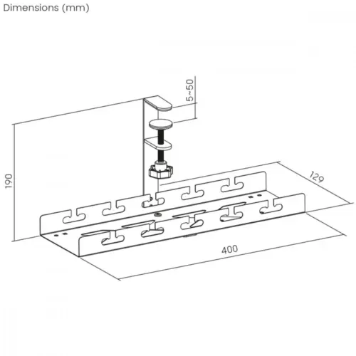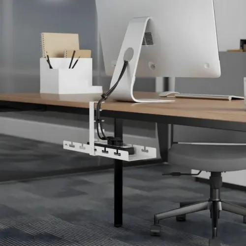 Keep your workspace neat and tidy with a desk-mounted organizer. This practical 40 cm long holder allows you to easily organize cables and mount a power strip without drilling or permanently interfering with the furniture. Thanks to the clip-on mounting system, it can be easily attached to the tabletop, and also quickly removed or moved if necessary. The organizer is ideal for the home office, gamer’s room or workplace where aesthetics and functionality matter.