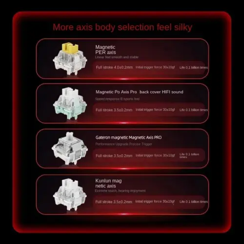 Anti-GhostingСУИЧОВЕ, МАРКА : AmberСУИЧОВЕ, ТЕХНОЛОГИЯ : MagneticСУИЧОВЕ, ТИП : LinearСУИЧОВЕ, ИМЕ : Magnetic Amber ProФАБРИЧНА СМАЗКА : ДаСУИЧОВЕ, ЖИВОТ : 100 Million keystrokesСУИЧОВЕ, ХОД ЗА АКТИВАЦИЯ : ProgrammableОБЩ ХОД НА СУИЧА : 3.5±0.2mmСИЛА ЗА АКТИВАЦИЯ : 30±10gfСМЕНЯЕМИ СУИЧОВЕ : ДАКЛАВИШИ, МАТЕРИАЛ : PBTКАПАЧКИ НА КЛАВИШИТЕ : Side PrintМАТЕРИАЛ, ОСНОВА : АлуминийЧЕСТОTА НА ПРЕДАВАНЕ : 8000 HzЧЕСТОТА НА СКАНИРАНЕ : 16 KHzЗАБАВЯНЕ ПРИ ОБРАБОТКА : 0.1 msБРОЙ КЛАВИШИ : 68ПОДСВЕТКА : RGB
