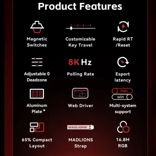 Madlions професионална геймърска механична клавиатура Professional Gaming Mechanical Keyboard MAD 60 HE Flagship V2 – 8K, Magnetic Amber Pro Switches – Black