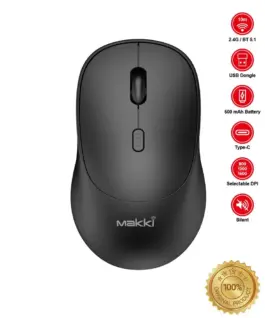 Makki безжична мишка Wireless Mouse MAKKI-MSX-2401 – USB-C, Silent, 1600dpi, 2.4G, Bluetooth, Rechargeable