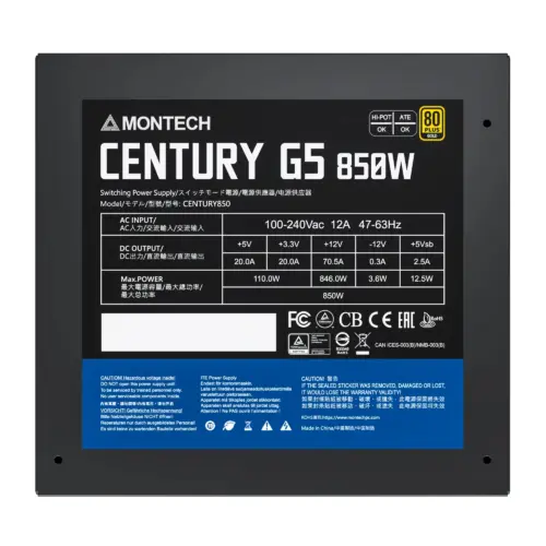Montech захранване CENTURY G5 850, PSU ATX3.0, Gold, Full Modular