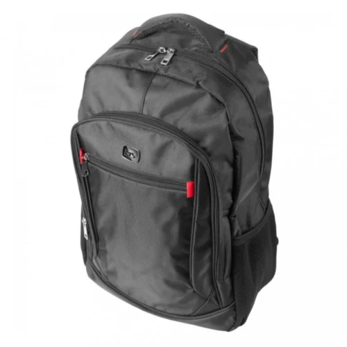 The main compartment contains an additional separate compartment for a Лаптоп, as well as an organiser for essential items (e.g. smartphone, documents, pens). On both sides, additional pockets made of soft dense mesh. The design of the back surface in contact with the back has been developed so that the backpack maintains a slight distance from the body, thus reducing excessive perspiration of the user. Red accents on a black background provide an additional elegant touch to the overall design.