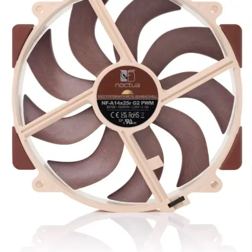 ПРОИЗВОДИТЕЛ : Noctua КОД НА ПРОИЗВОДИТЕЛЯ : NF-A14x25r-G2-PWM РАЗМЕР(мм) : 140 x 140 x 25 mmОБОРОТИ В МИНУТА(rpm) : 300-1500 RPMВОЛТАЖ : 12 V DCТИП ЛАГЕРУВАНЕ : SSO2 BearingВЪЗДУШЕН ПОТОК : 155.6 m3/hВЪЗДУШНО НАЛЯГАНЕ : 2.56 mmH2OАМПЕРАЖ (A) : 0.19 AМОЩНОСТ (W) : 2.28 WНИВО НА ШУМ : 24.8 dBAКОНЕКТОР : 4 pin PWMЖИВОТ В ЧАСОВЕ : 150000ДРУГИ : Blade geometry: Progressive-Bend impeller