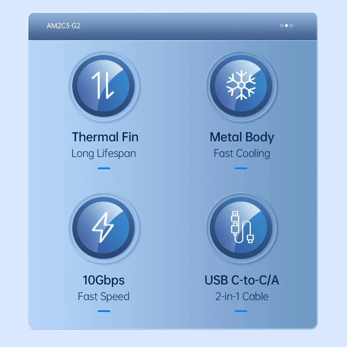 Orico външна кутия за диск Storage – Case – M.2 NVMe Dual-Bay – USB-C 10Gbps, Aluminium – AM2C3-2N-GY
