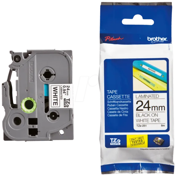 ЛЕНТА ЗА ЕТИКЕТНИ ПРИНТЕРИ BROTHER ТИП TZ – 24 mm x 8,00 m – BLACK ON WHITE TAPE – PN TZE251 (TZE-251)