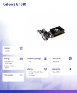 Graphics Card GeForce GT610 1GB DDR3 64Bit DVI HDMI VGA LP FAN
