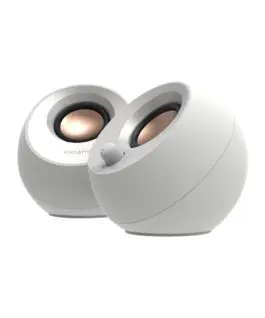 Creative Pebble speakers look as good as they sound. Choose from two available Цвятs, white or black, to match your style and desk.