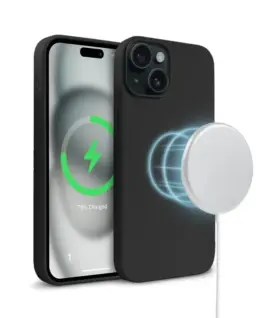Made of liquid silicone, the Цвят Cover Magnetic protective case for iPhone 15 Plus with built-in magnet for charger and accessories from MagSafe. High-quality N52 magnets with high attracting power ensure that the MagSafe charger and other magnetic accessories fit into the Crong case and adhere securely to the Apple phone.