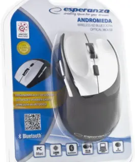Wireless optical mouse working in Bluetooth technology. Съвместим с Компютърs and Лаптопs equipped with bluetooth receiver. Range of up to 10m. Additional two side buttons make web browsing easier. Silent scroll and special rubber coating provide extremely high comfort of usage and make the mouse nice to touch. Thanks to the ergonomic shape, this mouse fits your palm perfectly and does not tire you that fast.