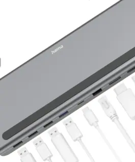 This USB-C hub has as many as 10 connectors. It will be especially useful when there are no sockets or their number needs to be increased not only in the Компютър, but also in the Лаптоп or Таблет. It will work well where you can connect many devices with one plug. You will find in it: 4 x USB-A, 1 x USB-C data, 1 x USB-C power, 2 x HDMI, 1 x DisplayPort, 1 x LAN/Ethernet.