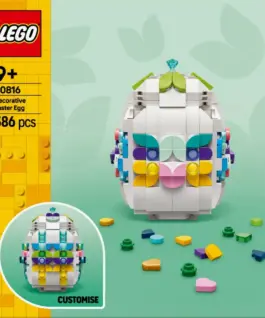 With the Easter Egg Decoration (40816), kids aged nine and up can unleash their creativity and celebrate the arrival of spring and Easter. Friends and family can „paint“ Easter eggs LEGO style. This building set lets them create their own Easter egg and decorate it with Цвятful LEGO elements, including a gold heart and a small diamond element. The egg toy features a flat base for easy display, and an opening top that can be removed to store extra pieces inside or another Easter surprise.