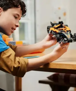 - NEOM McLaren Formula E model car with pull-back action This building set for kids aged 9 and up lets young racing fans build their own race car toy with pull-back action