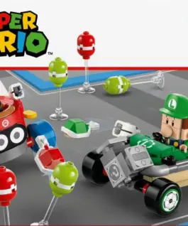 - Brick-built Mario Kart set Join forces with Baby Mario or Baby Luigi for balloon-busting battles and racing action with this LEGO Super Mario adventure toy playset