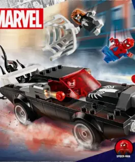 The buildable Venom car toy comes with 3 minifigures: Spider-Man with a web blaster, Venom with 4 tentacles and Spider-Woman (Julia Carpenter) with a flexible web that is large enough to ensnare a villain. The Venomized car features a shooter on each side, an accessible engine and an opening cockpit. Venom can sit inside the car by removing his 2 lower tentacles, which can be used to further Venomize the car. A safe containing gold bars inspires role-play action between the heroes and villain. The safe can be dragged away by the car, which also includes a compartment for the gold bars. For added digital fun, builders can zoom in, rotate models in 3D and track their progress using the fun, intuitive LEGO Builder app.