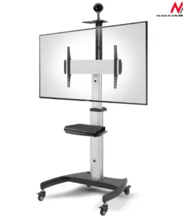 The stand is characterized by a practical construction, a very simple assembly and a very wide range of televisions that can be mounted on it. The table is made of high quality materials. Four shock-absorbing wheels (rubberized) allow to keep the weight of the equipment without any problems, while allowing efficient maneuvering and trouble-free positioning of the table. The stand also has an integrated cable masking system. The perfect table for conference rooms, for airports, public displays or other professional presentations. The set includes screws, necessary for proper assembly and pictorial installation instructions.
