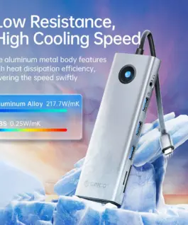 Orico докинг станция Type-C Docking Station Power Distribution 100W – HDMI, Type-C x 1, USB3.0 x 3, LAN 1000Mbps Gigabit, SD/TF, VGA, Audio – PW11-10P-GY