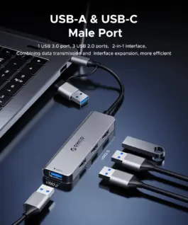 Orico хъб HUB USB-C/USB-A 7 port – USB-C x 2, USB3.0 x 1, USB2.0 x 4, Aluminium – YSA7-U3-GY