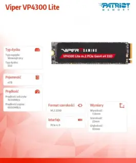 Patriot SSD 4TB Viper VP4300 Lite 7400/6000 M.2 PCIe Gen4x4 NVMe 2.0 PS5