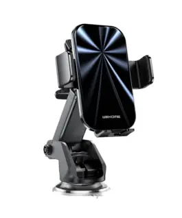 WEKOME WP-U203 K Captain Series automatic car holder with 15W fast wireless charging mounted to the dashboard or grille of your car. Ideal for those looking for a durable and stable phone holder for any journey.