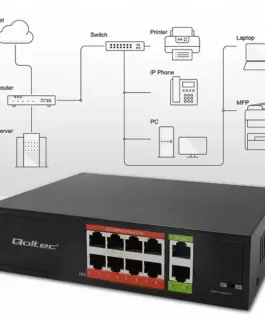 Qoltec FAST Ethernet PoE SWITCH 8xRJ45 2xRJ45 Uplink