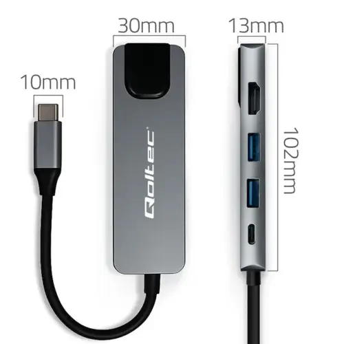 Qoltec HUB USB C 5in1 USB C PD 100W 2xUSB HDMI 4K RJ45