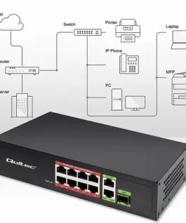 Qoltec SWITCH 8x RJ45 PoE 2x RJ45 Uplink 1x SFP