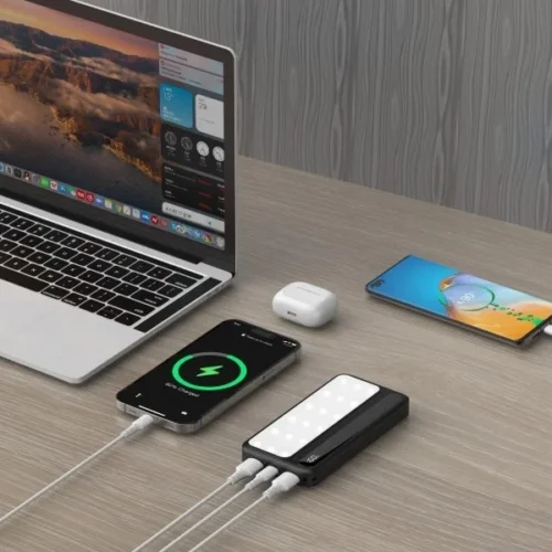 - LCD display precisely informs about the Power Bank’s charge level.