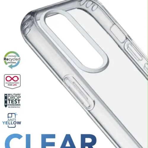 Clear Duo е прозрачен твърд калъф с гумирани ръбове, които абсорбират ударите и осигуряват високо ниво на защита за вашия смартфон. Изключително здрав и сертифициран по Military Test стандарт, калъфът предпазва телефона от удари и надрасквания, без да променя неговия дизайн. Освен това е съвместим с безжично зареждане. Clear Duo има доживотна гаранция – повече информация можете да откриете в секцията Cellularline Guaranteed For Life. Характеристики: Двоен материал: твърд гръб + гумирани ръбове Повдигната рамка за по-добра защита на дисплея и камерата Удароустойчив – защитава от изпускания и удари Military Test сертифициран – доказана устоMilitary Test сертифициран – доказана устойчивост Съвместим с безжично зареждане