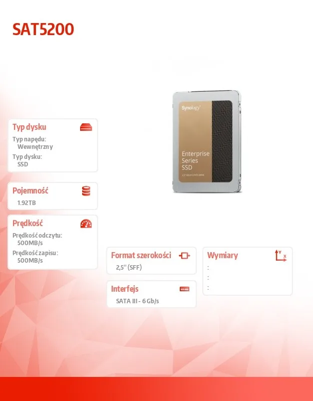 Synology SSD SATA 1,92TB 6Gb/s 2,5 inches 7mm SAT5221-1920G