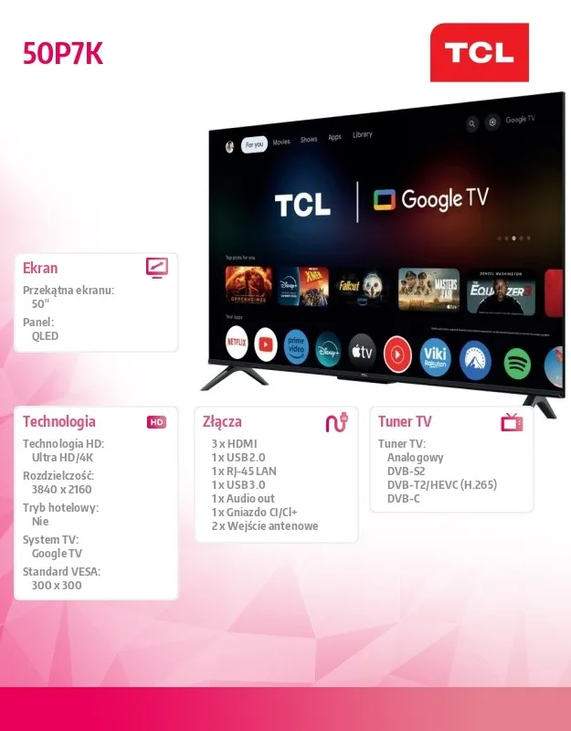 Телевизор METZ 50MQE7600Z, 50″(126 см), QLED+,Anti-Glare Google TV, 4K/UHD, 60Hz