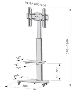 Mobile floor stand with shelf TV LCD/LED/Plasma 37-70″ silver