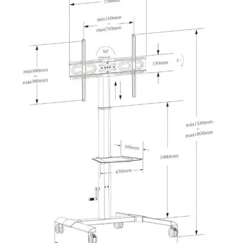 - Equipped with a height-adjustable shelf for AV components, Retractable bars reduce overall Размери for easy transport